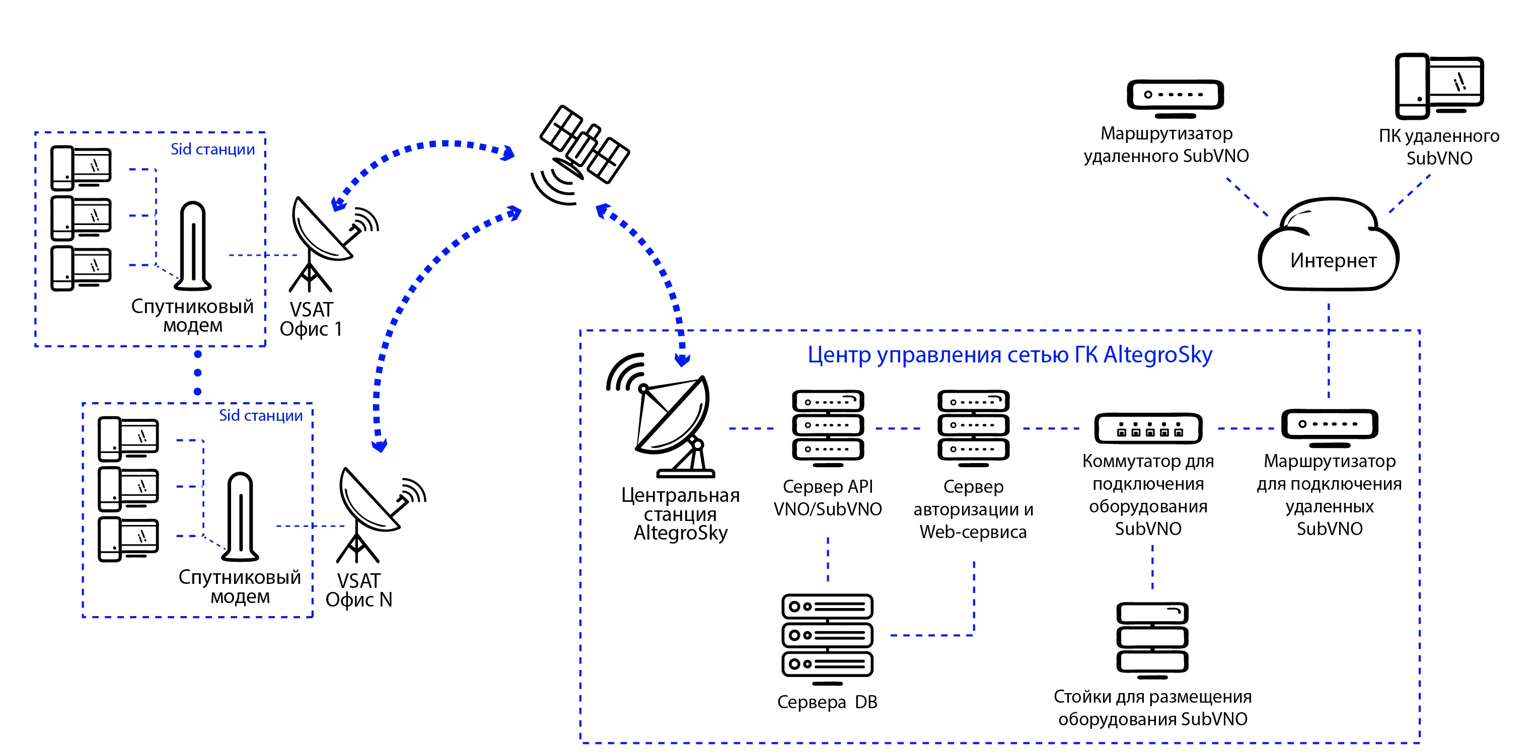 ГК AltegroSky в работе с виртуальными операторами реализует обе модели взаимодействия. Сервис имеет гибкие настройки под любую степень «погружения»: SVNO AltegroSky имеет возможность самостоятельно управлять выделенным спутниковым каналом, создавая в нем свои сети, тарифы, полностью управляя подключенными станциями.
